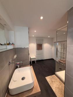 Neues Bad mit Dusche und Fenster.